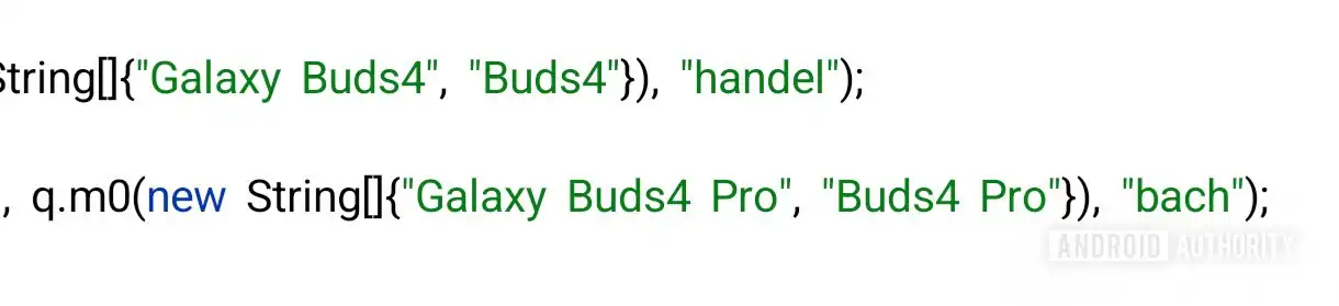 Cụ thể, Android Authority đã tìm thấy các thông tin về 2 sản phẩm tai nghe Galaxy Buds4 và Galaxy Buds4 Pro trong mã nguồn phiên bản One UI 8.5 đang thử nghiệm nội bộ. Galaxy Buds4 và Buds4 Pro được gọi là “handel” và “bach” trong mã sản phẩm. Tên gọi này dường như ám chỉ George Frideric Handel và Johann Sebastian Bach, hai trong số những nhà soạn nhạc vĩ đại được kính trọng nhất của thời kỳ hoàng kim âm nhạc đó.
