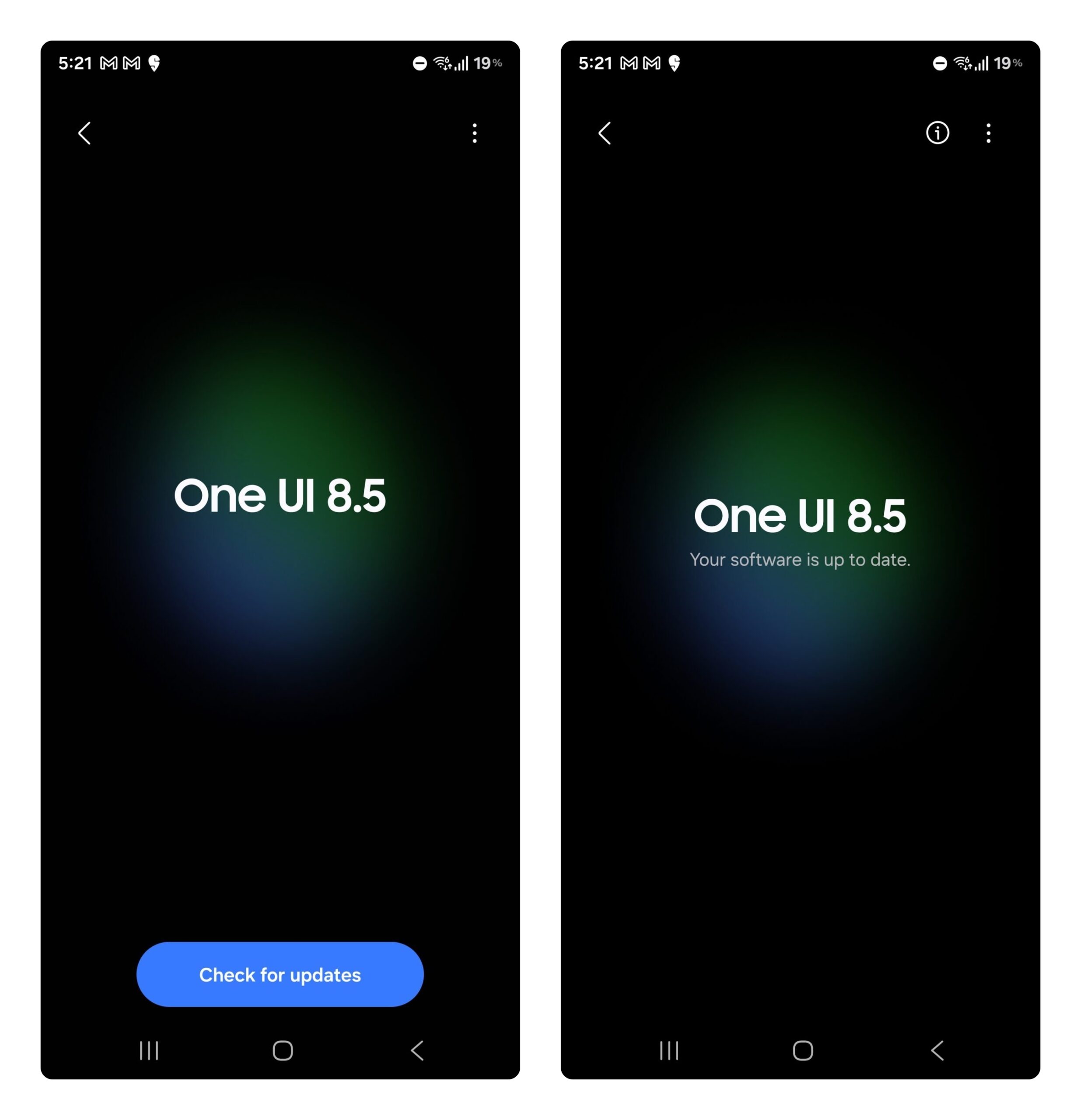 Samsung cuối cùng cũng đã thêm phiên bản riêng của mình cho “quả trứng phục sinh” Android, nhưng hãng không hề giấu nó đi: khi bạn vào menu Cài đặt > Cập nhật phần mềm, bạn sẽ thấy một hình ảnh khởi động nhỏ xinh với phiên bản One UI. Có nút Kiểm tra cập nhật ở phía dưới, và các tùy chọn khác như Tự động tải xuống qua Wi-Fi giờ đây có thể được truy cập bằng cách nhấn nút Thêm ở phía trên.