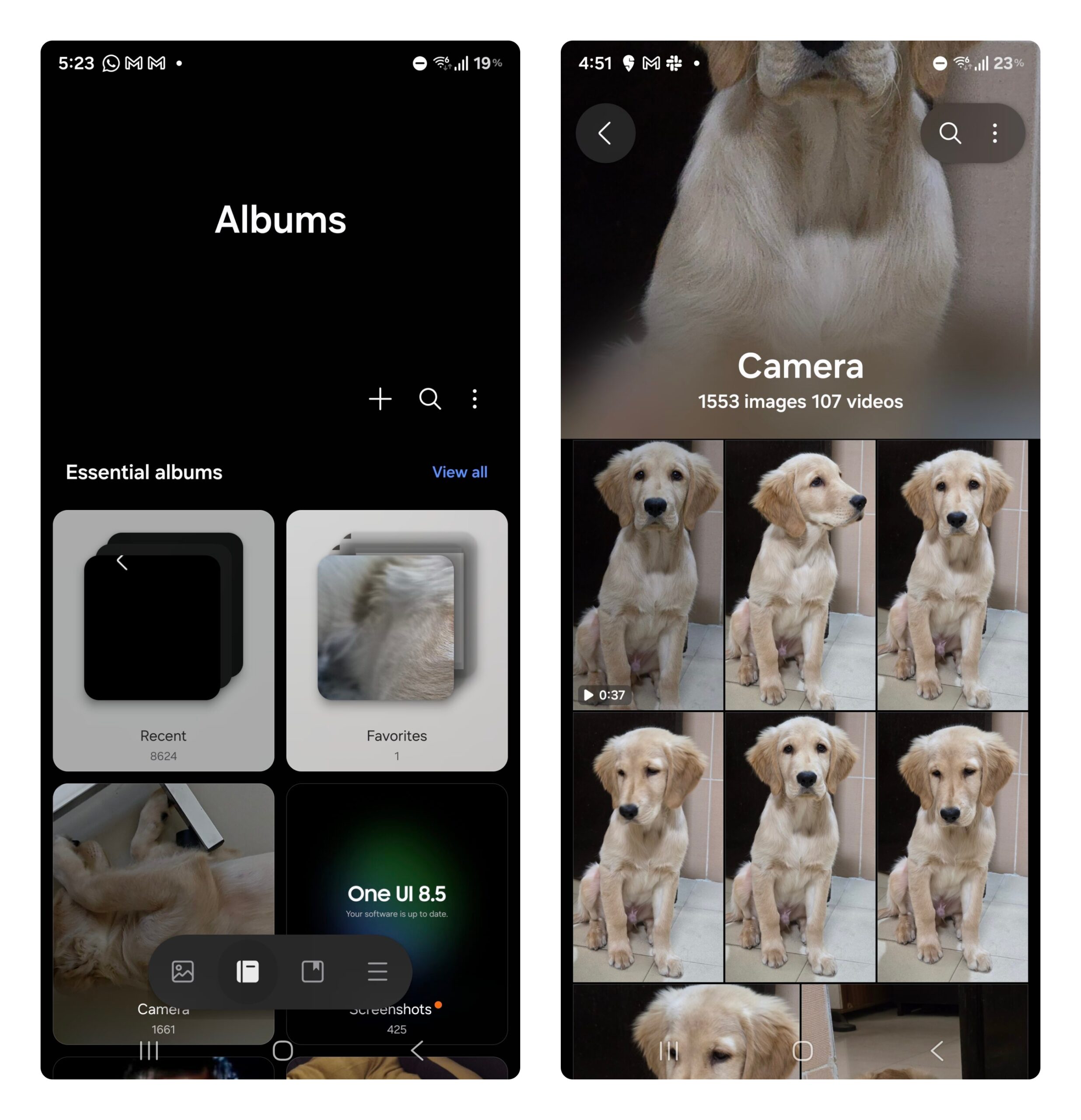 Ứng dụng Bộ sưu tập (Gallery) cũng có những thay đổi lớn. Các nút bấm được design lại lớn hơn đáng kể. Phần nửa trên của giao diện Album không chỉ còn hiện thị mỗi tên album đơn điệu mà giờ đây hiện thị thêm bản xem trước của ảnh mới nhất/ảnh nền của album đó. Có thể nó là rất trực quan!