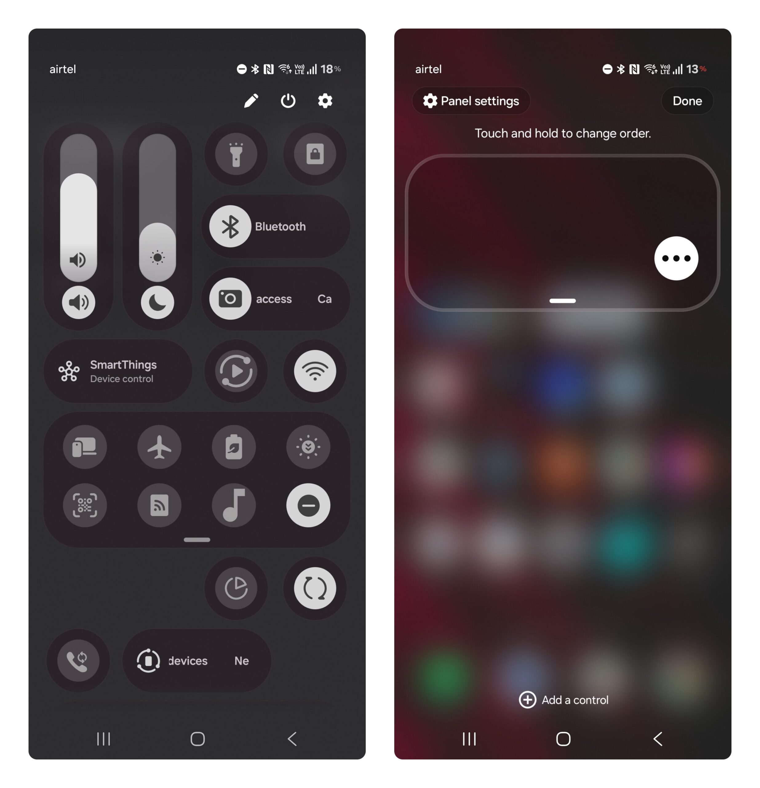 Đầu tiên, One UI 8.5 có sự thay đổi cực kỳ mạnh ở Bảng điều khiển nhanh (Control Center). Giờ đây người có thể thoải mái tuỳ chỉnh bất kỳ nút bật/tắt, tiện ích hoặc thanh trượt nào ở bất cứ đầu mà bạn muốn – bạn cảm thấy phù hợp với trải nghiệm của bản thân. Bạn thậm chí có thể xoá, làm gọn bảng điều khiển nhanh xuống ở mức gần như “trống trơn”.