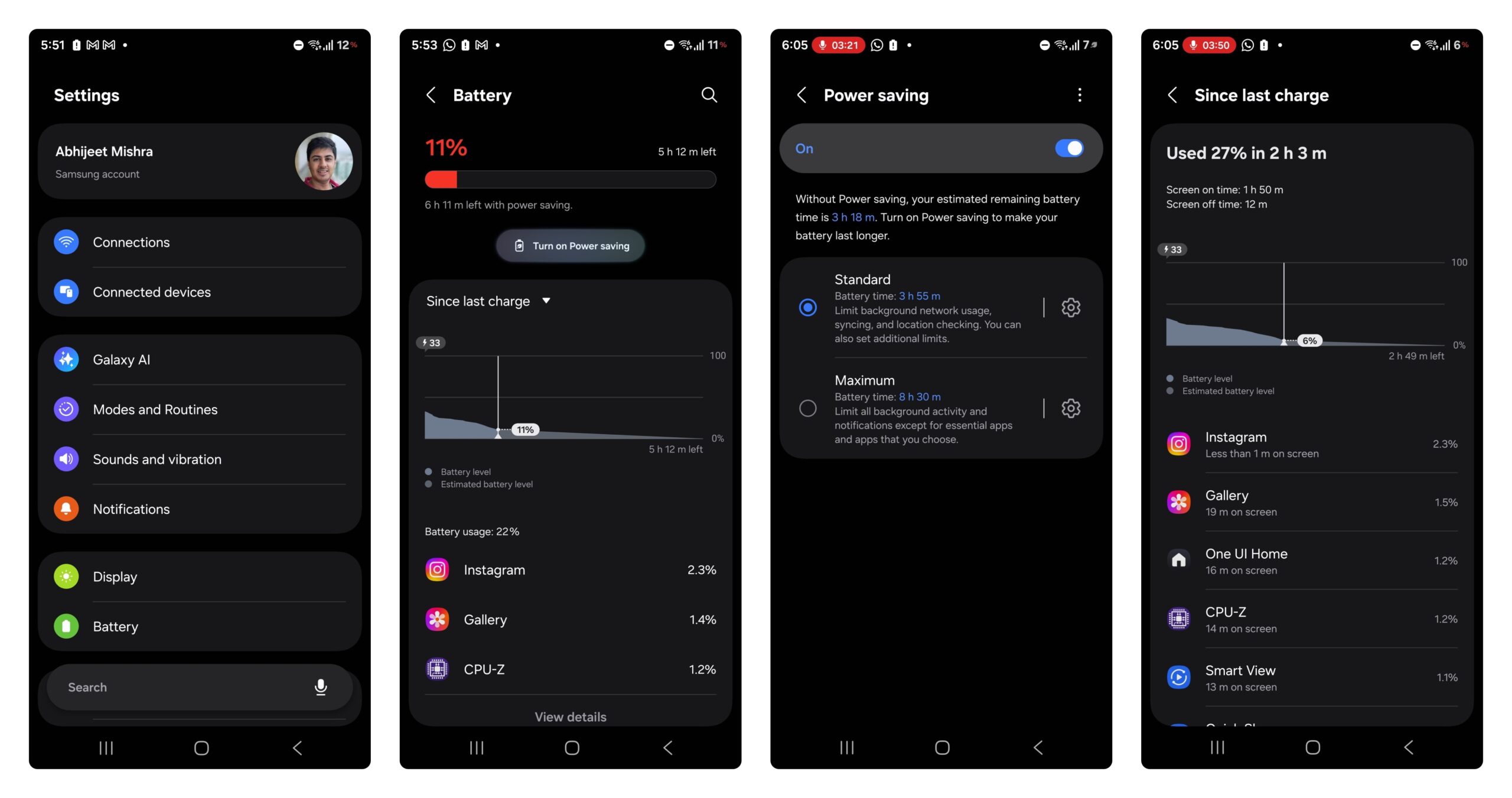 Biểu tượng pin trên thanh trạng thái đã biến mất và được thay thế bằng màn hình hiển thị phần trăm đơn giản, mặc dù hiệu ứng sạc pin được giới thiệu trong One UI 7 vẫn được giữ nguyên. Phần trăm pin chuyển sang màu đỏ khi pin yếu và chuyển thành hình chiếc lá khi bạn bật chế độ tiết kiệm pin. Rất có thể đang ở giai đoạn đầu của bản thử nghiệm nên chưa phải là phiên bản chính thức.