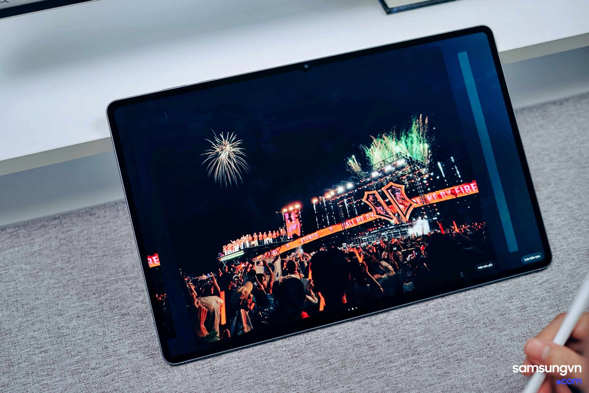 Với mình, màn hình luôn là yếu tố đầu tiên cần được “soi kỹ” khi trải nghiệm bất kỳ thiết bị công nghệ nào — và Galaxy Tab S11 Ultra cũng không phải ngoại lệ. Là sản phẩm thuộc dòng Ultra, chiếc máy tính bảng này sở hữu màn hình 14,6 inch cực lớn với viền siêu mỏng, cùng phần notch camera trước được tinh gọn, mang lại không gian hiển thị rộng rãi.