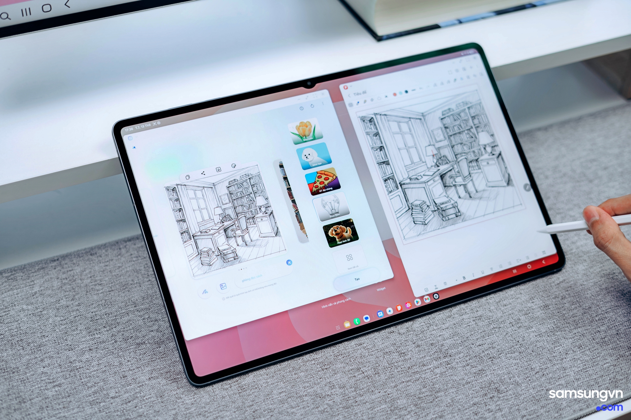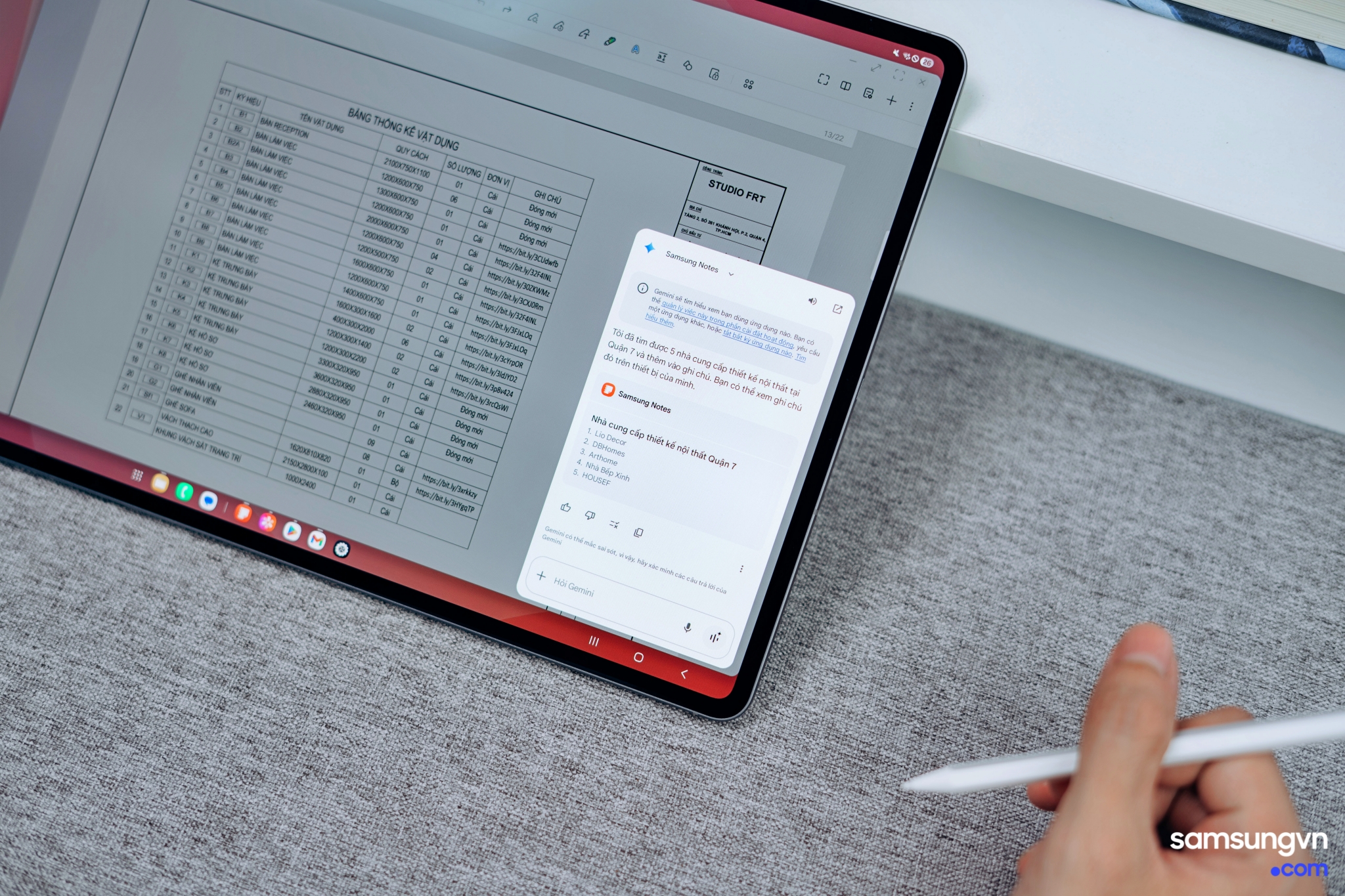 Tương tự những thiết bị Galaxy khác ra mắt trong năm nay, AI chính là một phần cốt lõi của Galaxy Tab S11 Ultra. Trong đó, Gemini Live hoạt động như một “người bạn đồng hành” thông minh – có thể trò chuyện, cùng bạn brainstorm ý tưởng và hiểu ngữ cảnh tiếng Việt tự nhiên. Trên màn hình lớn, Gemini còn được tối ưu hiển thị ở dạng pop-up, giúp bạn vừa trò chuyện, vừa thao tác các tác vụ khác một cách linh hoạt và mượt mà.