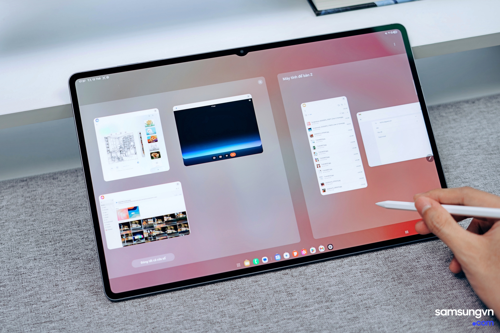 Máy tính bảng sinh ra để giúp người dùng làm việc ở bất kỳ đâu, và với dòng Galaxy Tab, Samsung DeX chính là điểm sáng nổi bật nhất cho trải nghiệm này. Trên One UI 8.0 mới nhất, DeX được nâng cấp giúp tối ưu hiệu suất đa nhiệm nhiều cửa sổ hiệu quả hơn bao giờ. Điểm mình thích nhất là giao diện được trau chuốt trông đồng nhất hơn, cùng khả năng tạo đến 4 không gian làm việc (workspace) khác nhau, cho phép nhóm các ứng dụng theo từng chủ đề như công việc – sáng tạo – giải trí… Nhờ đó, không gian hiển thị trở nên khoa học và dễ kiểm soát hơn, đặc biệt khi cần chuyển đổi nhanh giữa các tác vụ.