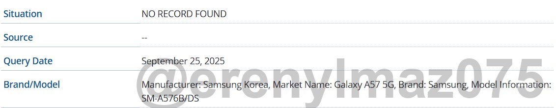 Một tài khoản trên nền tảng X tiết lộ, Galaxy A57 đã được liệt kê trong cơ sở dữ liệu IMEI. Mã IMEI này dành cho mẫu model SM-A576B/DS, ám chỉ phiên bản hai SIM của thiết bị. Đây không phải là một phát hiện bất ngờ, vì việc Samsung ra mắt một chiếc điện thoại Galaxy A5x mới mỗi năm là điều hoàn toàn có thể.
